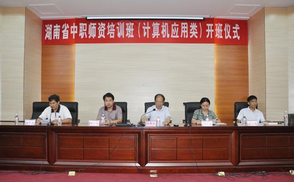 7月18日上午8时30分,学院在办公楼学术报告厅举行湖南省中职师资培训班(计算机应用类)开班仪式,学院院长张新民、副院长杨文涛、信息技术系主任刘灿勋、党总支书记袁仁水等出席了会议。会议由教务处副处长冯中平主持。