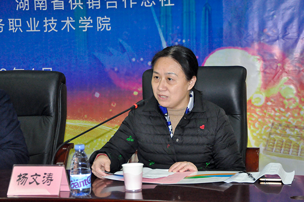 1月18日下午15:00,由湖南省教育厅和湖南省供销合作总社主办,我院承办的2018年湖南省职业院校高职财务管理决策技能竞赛的开幕式在我院办公楼一楼学术报告厅举行。省供销合作总社党组成员、监事会主任廖国峰、省教育厅派驻我院第一副主任李建跃、省供销合作总社监审处副处长刘娟、我院党委书记周忠新、我院副院长杨文涛出席、裁判长徐曦及参加本次竞赛的指导老师和参赛选手100多人参加本次开幕式。开幕式由杨文涛副院长主持。