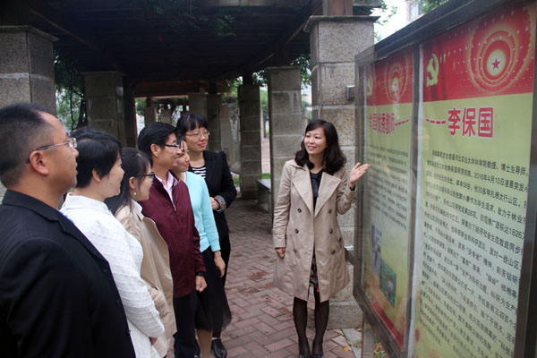 在学院的文化长廊里,“全国优秀共产党员”、“全国优秀教师”、“全国师德先进个人”——李保国同志的先进事迹专题展十分引人注目;校内先进共产党员代表“照片上墙”、“事迹上榜”……以更生动、更直观的方式向全院师生宣传先进党员事迹,更好地发挥他们的示范带动作用。张丽莉、肖彬、谢林勇、洪娟、谢立靖……这些优秀共产党员,就像一面面引领进步的旗帜,带动更多的党员创先争优、不断向前。