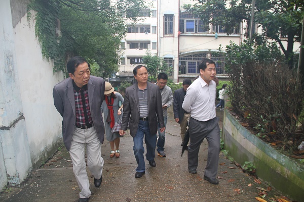 孔院长一行从办公楼出发,途径体育馆、篮球场、排球场、新建公租房、学生宿舍、垃圾站、食堂、学校后门、到达一教学楼。针对围墙砖头松动、篮球架老旧等存在的基本设施问题,商讨了相应对策,建议实施灭鼠、修理篮球架、补救绿化带、固定排球场上的铁杆等措施;防盗方面:加固、安装防盗窗,杜绝偷盗问题;环境卫生方面:严禁校内种菜、垃圾站应及时清理等。