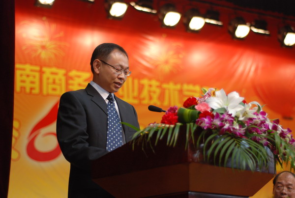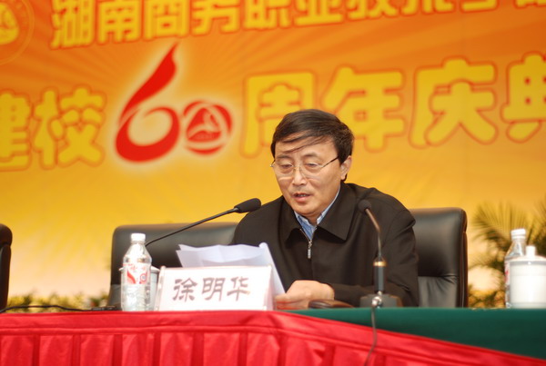 最后,湖南省人民政府副省长徐明华发表重要讲话。他代表省委、省政府对湖南商务职业技术学院的全体师生员工、广大校友表示热烈的祝贺,向前来参加学院建校60周年庆典的各位来宾表示诚挚的问候。他指出学院办学60年间,在办学层次上、培训教育形式上,实现了办学水平的转变和跨越。肯定了商务职院与时俱进,积极参与新农村建设取得的可喜成绩。同时,他还指出我省作为农业大省,实现农业现代化的任务十分艰巨。要实现农业现代化必须有一大批高素质的农民作强有力的支撑。希望学院抓住我省推进“四化两型”的战略机遇,发扬为农服务的传统,发挥涉农教育培训的优势,挖掘教学资源的潜力,紧紧依托供销行业,培养农村高素质技能型人才,为我省农业发展、农民增收和农村繁荣做出新的贡献。