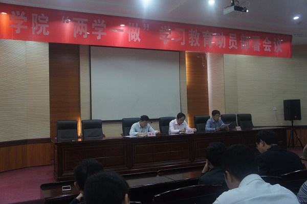 5月20日下午,学院“两学一做”学习动员部署会议在办公楼一楼报告厅召开。党委书记周忠新做动员报告,党委副书记吕逢铬安排部署“两学一做”工作。会议由党委委员、副院长张朴主持。院领导、全体教职工党员、学生党员代表参加了大会。