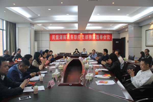 4月12日下午3点,民盟湖南商务职院支部换届大会在学院办公楼512会议室召开。省政协常委、民盟省委专职副主委胡颖,民盟省委组织处处长徐智,办公室副主任陈雅云,我院党委书记周忠新,党委委员、宣传统战部部长禹明华出席大会,民盟湖南商务职院支部全体成员参加会议。学院党委委员、宣传统战部部长禹明华主持会议。