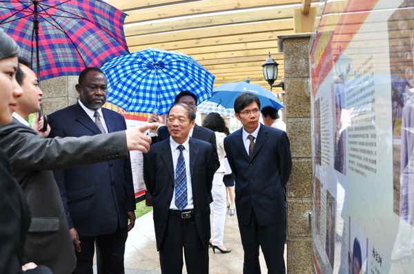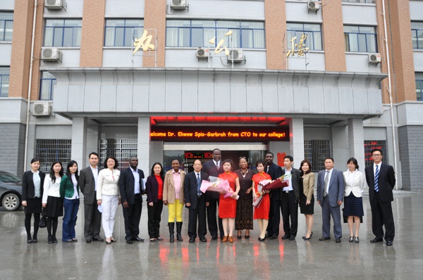 2011年4月16日下午,加纳共和国英联邦电信组织( CEO)Ekwow Spio-Garbrah博士一行莅临我院,学院大门口,我院学生用鲜花迎接远道而来的加纳国朋友。