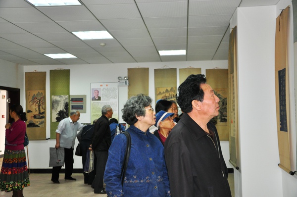 会后,全体离退休教职工一齐到办公楼六楼职工之家参观了唐子强书画展。