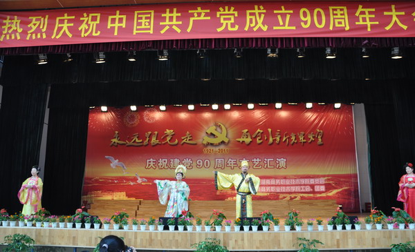 随后,进行了精彩的文艺汇演,机关二分工会带来的歌舞《为人民服务》拉开了文艺汇演的帷幕。红歌联唱、乐器演奏、T台秀等一系列节目展示出教师们的才艺与风采。最后,机关三分工会的舞蹈《走向辉煌》把整个演出推向了高潮。经评委打分评选:机关三分工会舞蹈《走向辉煌》荣获第一名,并和电子信息系分工会一同获得优秀组织奖。电子信息系分工会《T台秀》和原基础课部分工会《红歌联唱》获得二等奖。人文与旅游系分工会朗诵《七月的畅想》、机关二分工会舞蹈《为人民服务》、会计系分工会二胡演奏《喜送公粮》共享三等奖。机关一分工会唢呐独奏《没有共产党就没有新中国》、《好汉歌》、关工委王军笛子独奏《洪湖水浪打浪》和唐子强现场书法表演、经济贸易系分工会歌曲《相亲相爱一家人》以及机关二分工会的小品《应聘》获得优胜奖。