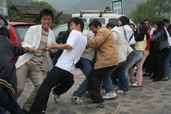 我院教工党员与其他高校的同学们开展拔河比赛