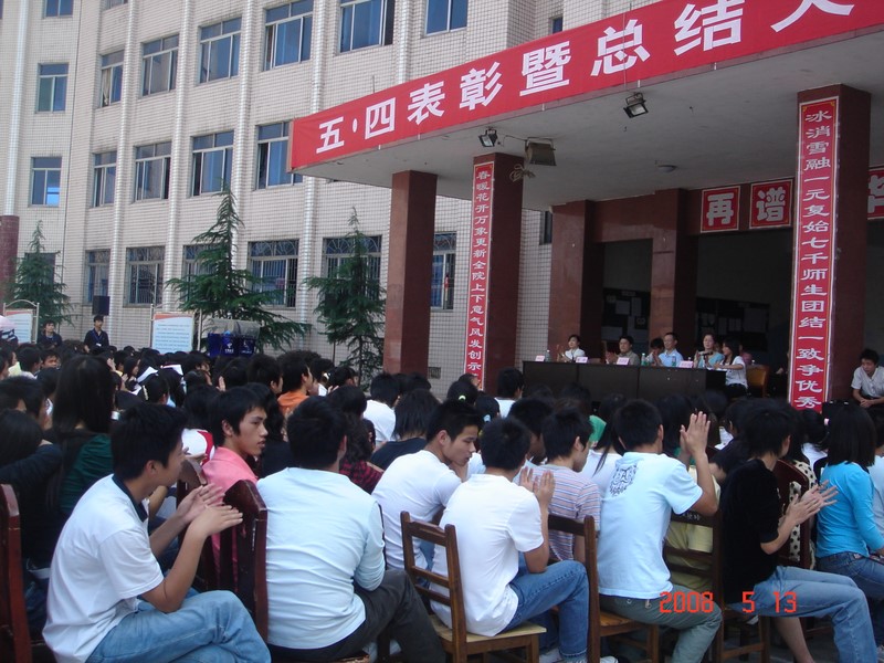 5月13日下午,在学院前操场,我院召开2007年度五•四总结暨表彰大会。会议由院团委陈慧军老师主持。张朴副院长、学工处刘沈荣处长、唐柳荷副处长、各系主管学生工作的副主任、辅导员和老师出席会议。会上,刘处长作团委2007年度工作总结报告和宣读表彰文件。唐柳荷副处长宣读了关于2008年发展新团员的文件,宣读了关于表彰党的十七大精神网上知识竞赛获奖者的通报和关于表彰2007年度国家奖学金获得者的决定。最后,张朴副院长作了重要讲话。希望广大同学以先进为榜样,努力营造学先进、创先进的良好局面。