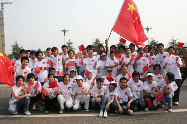 火炬已经远离了我们的视线,同学们余温未尽,一起合影留念,永远记住这一难忘的时刻。
