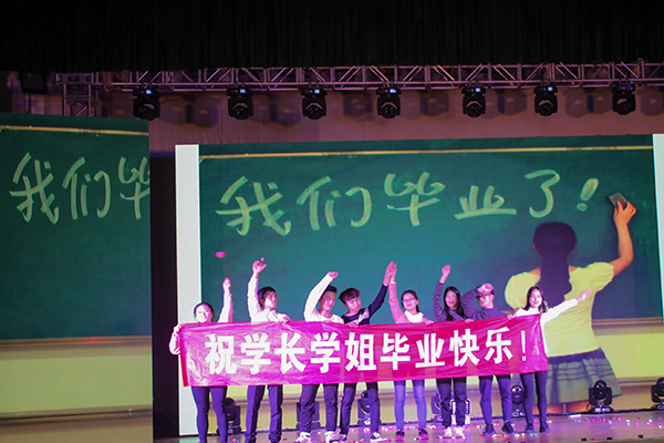 晚会在一曲优美的开场舞《一波湘水 荡湘云》中拉开帷幕。经贸学院院长易能向在场师生表达了美好祝愿,希望同学们树立健康向上的人生理想,把握人生,成就精彩,将自己最美的青春献给这个最好的时代。之后的表演中,小品、话剧、歌曲、舞蹈等节目轮番上阵。其中,16国贸专业带来的舞蹈《RunawayBaby》,节奏紧凑,动态十足,展现了当代大学生的青春与活力。17市营1班表演的小品《不忘湘心》诙谐幽默,引得观众阵阵喝彩。17电商1、2班共同演绎的《幕影青春》紧扣大学三年的时光,以新颖的表演形式展现了时光如梭的青葱岁月。晚会上,同学们的舞台创意和表演才能,得到了在场观众的交口称赞。晚会在该院团学分会代表团集体朗诵的《湘商魂》中圆满落幕。