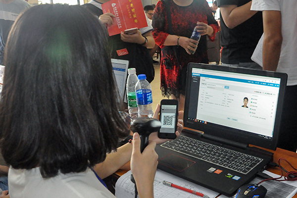 为了优化、升级新生接待工作,学院不仅将迎新工作前移化,而且采用了“报到APP+二维码”移动智能迎新,实现“一键式”报到。“本来以为人会很多,排队很麻烦,结果几分钟就搞定了。”商务信息技术学院2017级新生周绍嵘兴奋地说。原来,她早在网上提前完成了在线信息登记、缴费等事项,在迎新现场只花了1分钟便完成了报到手续。