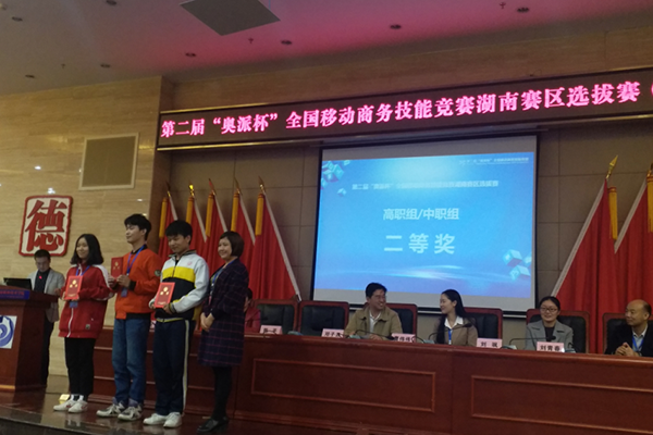11月11日,第二届“奥派杯”全国移动商务技能竞赛湖南赛区选拔赛在长沙商贸旅游职业技术学院圆满落幕。我校经济贸易学院选派参赛学生,由雷相宇、刘姝彤、肖嘉倩同学组成的“山市晴岚”队,邓骁、蔡沁灵、龚鑫同学组成的“闪电一号”队均获得二等奖;刘元君和谭星老师也均获得了优秀指导教师奖。此外,大赛还授予我校“山市晴岚”代表队最佳创意奖。