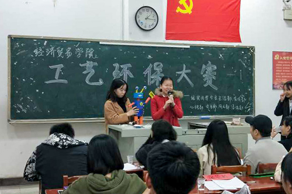 为了进一步贯彻“保护环境、低碳生活”的理念,提高同学们的环保意识,丰富学生课余生活,11月15日中午12点,由经贸学院主办的“公益环保大赛”在二教101举行。