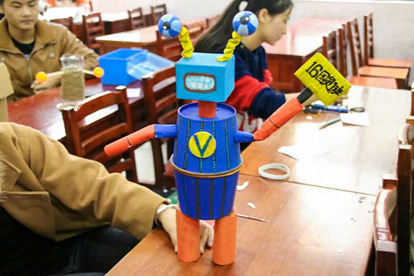 本次比赛共有21支队伍参赛,选手们需要在规定的30分钟内利用生活中的废旧物品制作出不同的工艺作品进行展示,每队派出一名代表上台对自己的作品进行介绍,阐述他们的创作思想,突出自身作品的环保理念,展示创新风采。