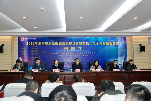 “2018年湖南省职业院校技能竞赛市场营销、电子商务技能大赛”开幕式在我院办公楼六楼职工会议室隆重举行