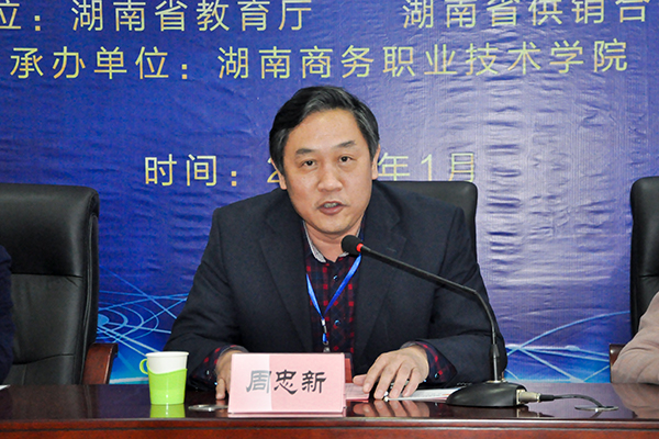 1月16日下午,由湖南省教育厅、湖南省供销合作总社主办,我院承办的“2018年湖南省职业院校技能竞赛市场营销、电子商务技能大赛”开幕式在我院办公楼六楼职工会议室隆重举行。赛点主任、我院党委书记周忠新,省教育厅职成处副调研员刘婕、省教育厅派驻我院第一副主任李建跃,省供销社合作总社监审处处长张睿华、副处长刘娟,裁判长刘佳刚、彭慧及本次竞赛裁判员、参赛选手等400余人参加开幕式。开幕式由学院副院长杨文涛主持。