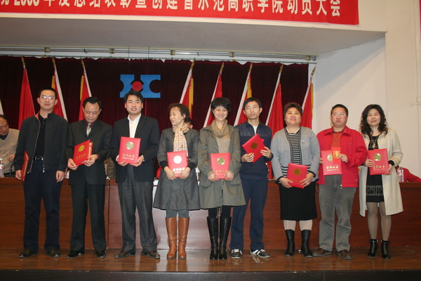 另外,在大会上吕逢铬副院长宣读了学院内设机构调整和新一届中层干部任免的通知;张朴副院长宣读了2008年度先进集体的表彰文件;林国安副院长宣读了2008年度先进个人的表彰文件;杨文涛副院长宣读了人才培养工作优秀等级评估先进集体和个人的表彰文件,并现场进行了颁奖。