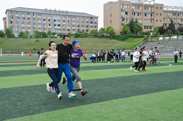 为丰富学院业余文化生活,促进教职工的身心健康和全民健身活动的开展,4月18日下午3:00,由学院工会主办、机关二分工会和会计学院分工会承办的第二届教职工趣味运动会在田径场举行。全院教职工以分工会为单位组队参赛,共设有毛毛虫竞速、巨人脚步、双人背夹球接力、50米三人四足跑接力、快乐大脚接力赛5个比赛项目。
