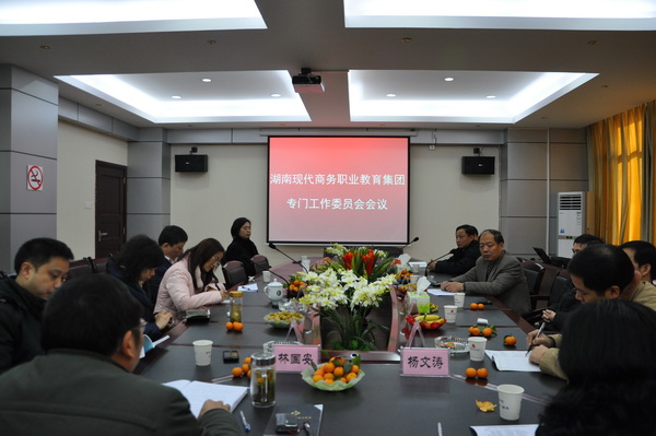 12月29日上午9时,湖南现代商务职教集团专门工作委员会会议在学院办公楼515会议室召开。会议由集团理事长、学院院长张新民主持。长沙商贸旅游职院副院长张红专、湖南现代物流职院副院长肖智清、湖南外贸职业学院副院长魏敏、长沙民政职院经贸系主任王庆国、湖南生物机电职院经济管理系主任黄中培、湖南省新一佳商业投资公司副总经理周伟、湖南省茶业有限公司工会主席、人力资源部经理苏南、长沙国际旅行社常务副总经理马昕、湖南友阿集团主管郭晨、湖南银华棉麻有限公司人力资源部经理任家珍、湖南供销电子商务公司副总裁曾鸣以及学院副院长林国安、杨文涛和有关系部负责人出席了会议。