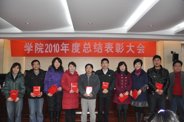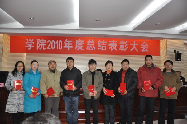 学院纪委书记郑佳生通报了2010年度工作人员考核结果。吕逢铬副院长宣读了学院2010年度表彰文件,共评选出人文与旅游系、会计系、纪检监审室、招生就业处、科研产业处5个年度先进集体及59名年度先进个人,并现场进行了颁奖。
