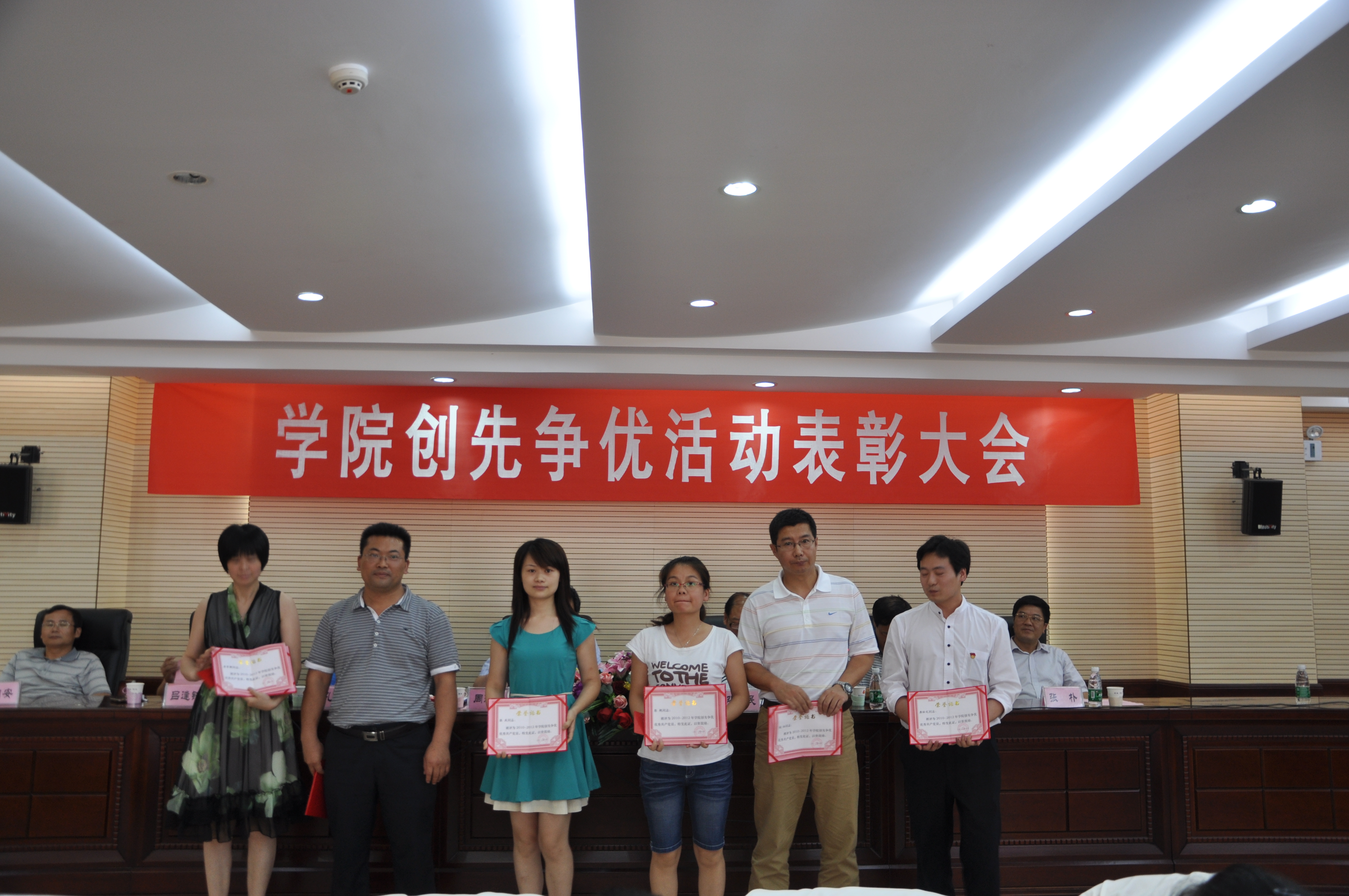 (记者 宋丹)6月21日下午14:30,全体在职教职工党员、新发展预备党员在办公楼六楼职工会议室召开学院创先争优活动表彰大会。大会由党委副书记孔军山主持。