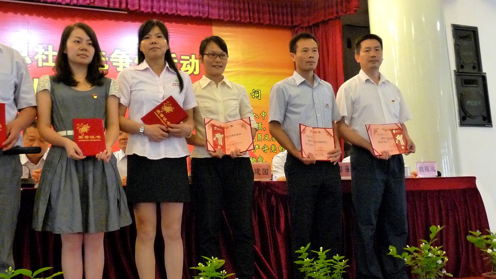 会计系党总支副书记石辉金同志(右二)被评为省社直属单位创先争优优秀共产党员