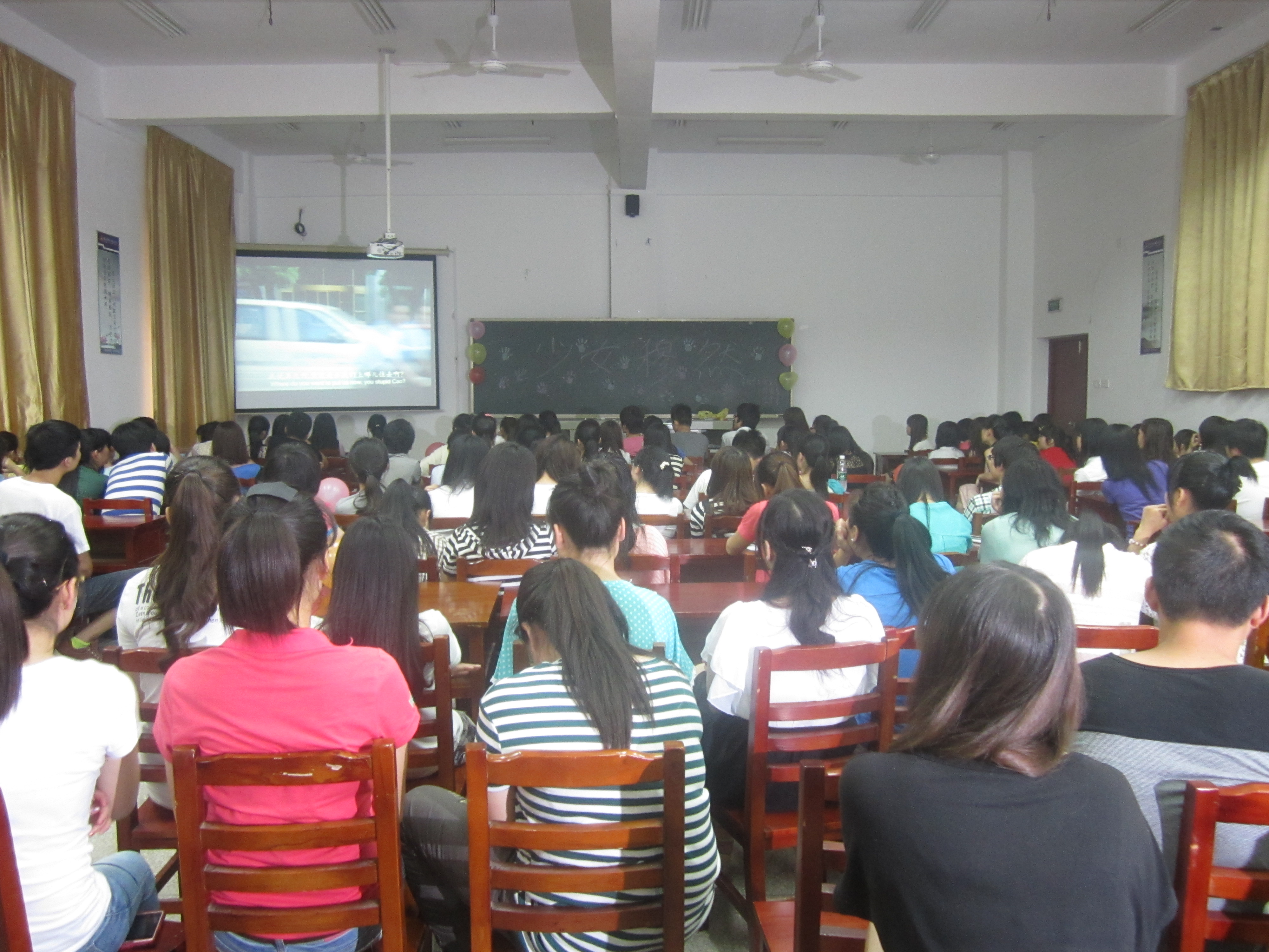 各系同学在第二教学楼集中观看心理健康电影
