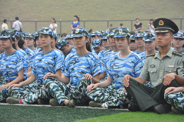 军训动员大会结束后,为期13天的2013级新生军训正式拉开帷幕。(记者 陈群)
