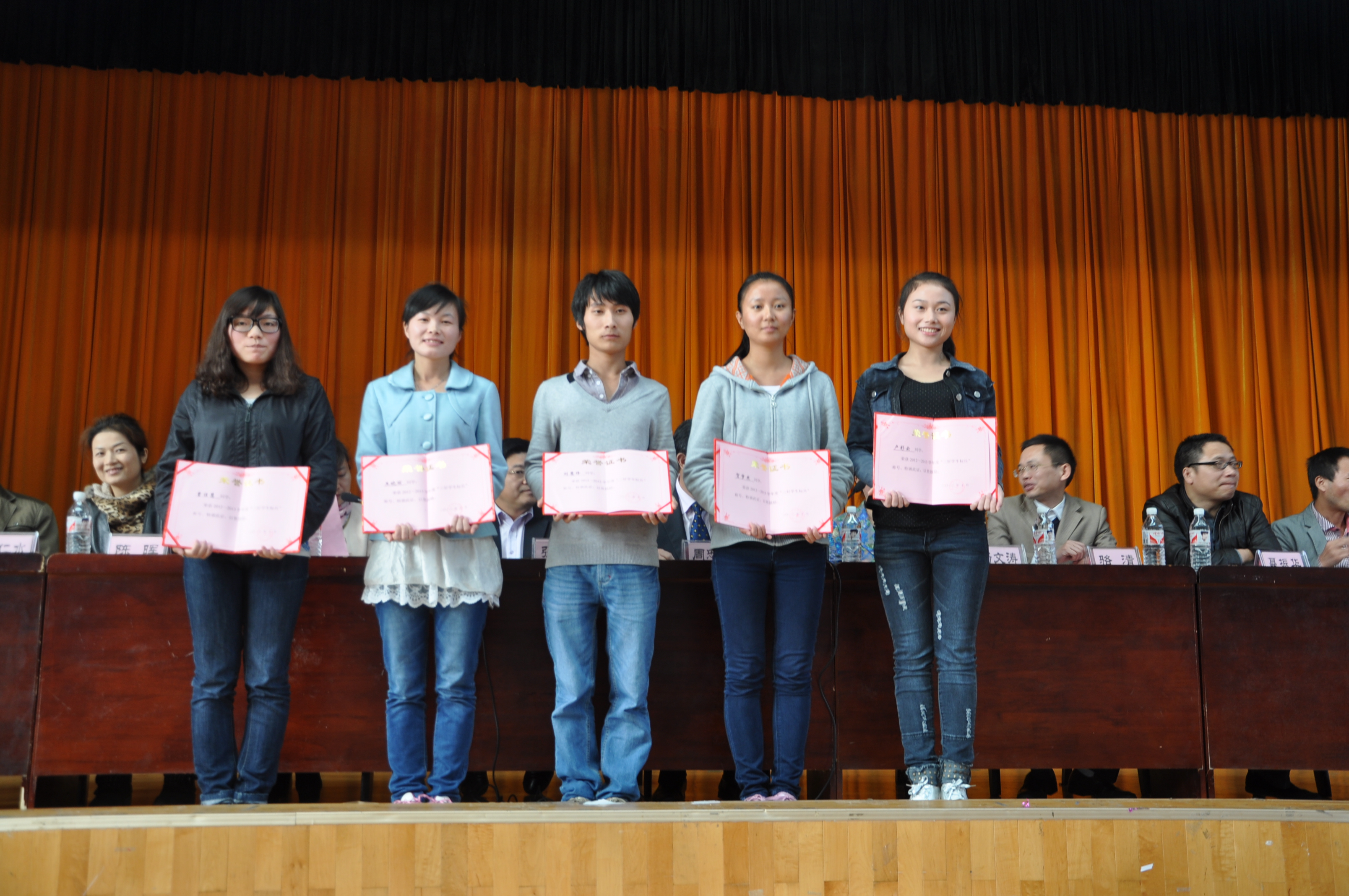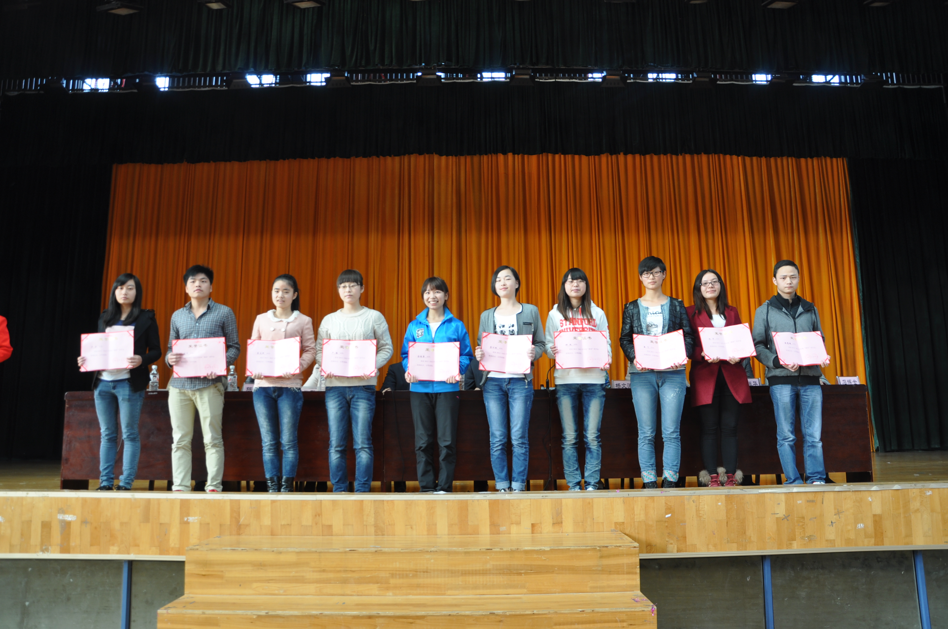 副院长杨文涛宣读了表彰文件。在2012-2013学年评优评先活动中,经济贸易系团学分会被评为“优秀团学分会”;11级文秘2班等12个班级被评为“先进班集体”;11级电信班卢彩云等5名品学兼优的同学获得国家奖学金,并授予他们“三好学生标兵”荣誉称号;11级会统1班严格等10名同学获得“湘茶”奖学金;11级财管1班罗宇等1622名同学获得院级奖学金; 11级酒馆1班冯娟等244名同学被评为“三好学生”;11级连锁1班王利欢等171名学生干部被评为“优秀学生干部”。