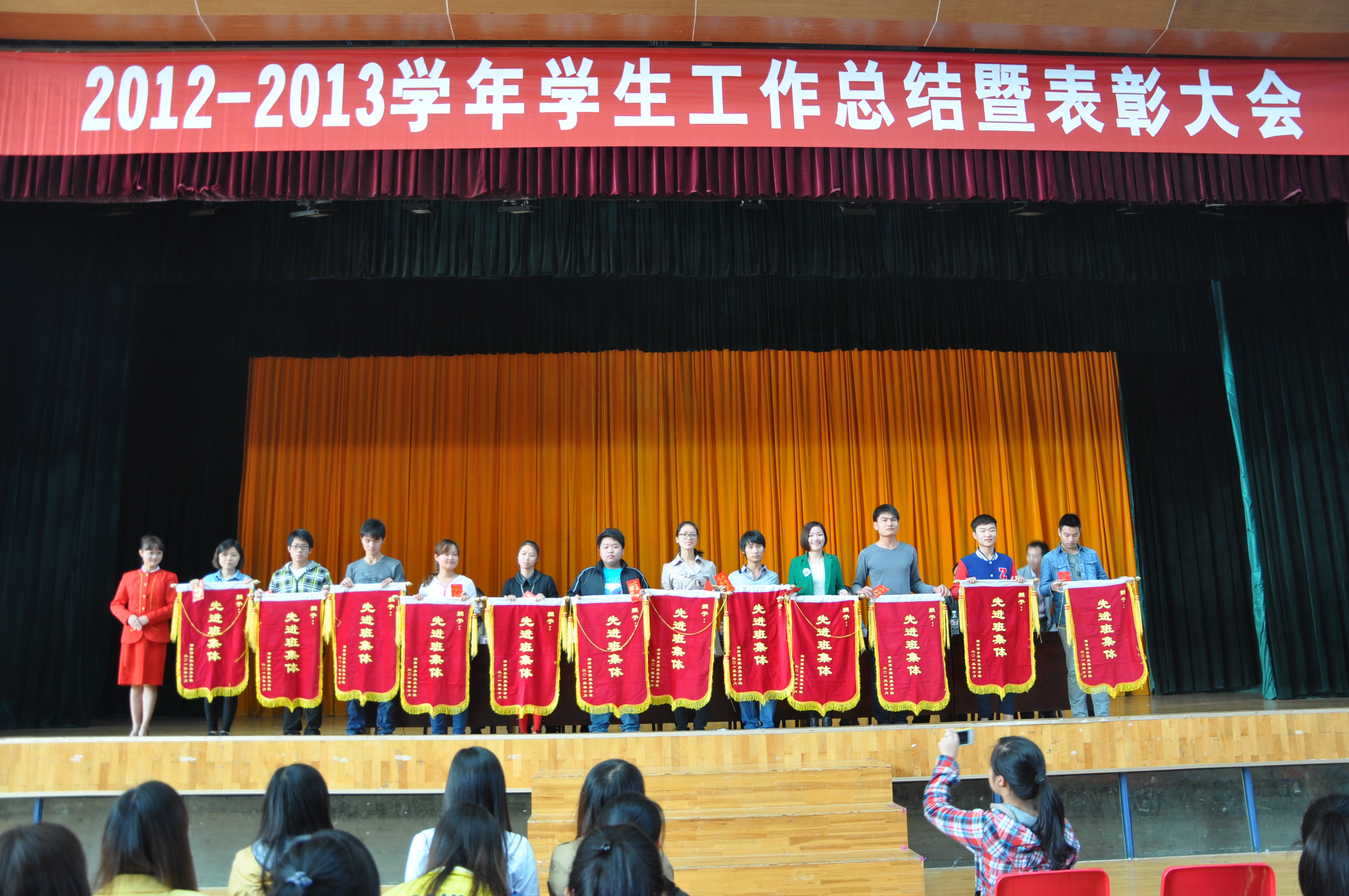 11月5日下午2:30,学院在体育馆隆重举行2012-2013学年学生工作总结表彰大会。出席此次大会的领导有学院党委书记周忠新,副院长张朴、杨文涛,学工处处长唐柳荷及各系党总支书记、副书记。学院各系先进班集体、优秀班干部、三好学生及奖学金获得者参加了大会。学工处处长唐柳荷主持大会。