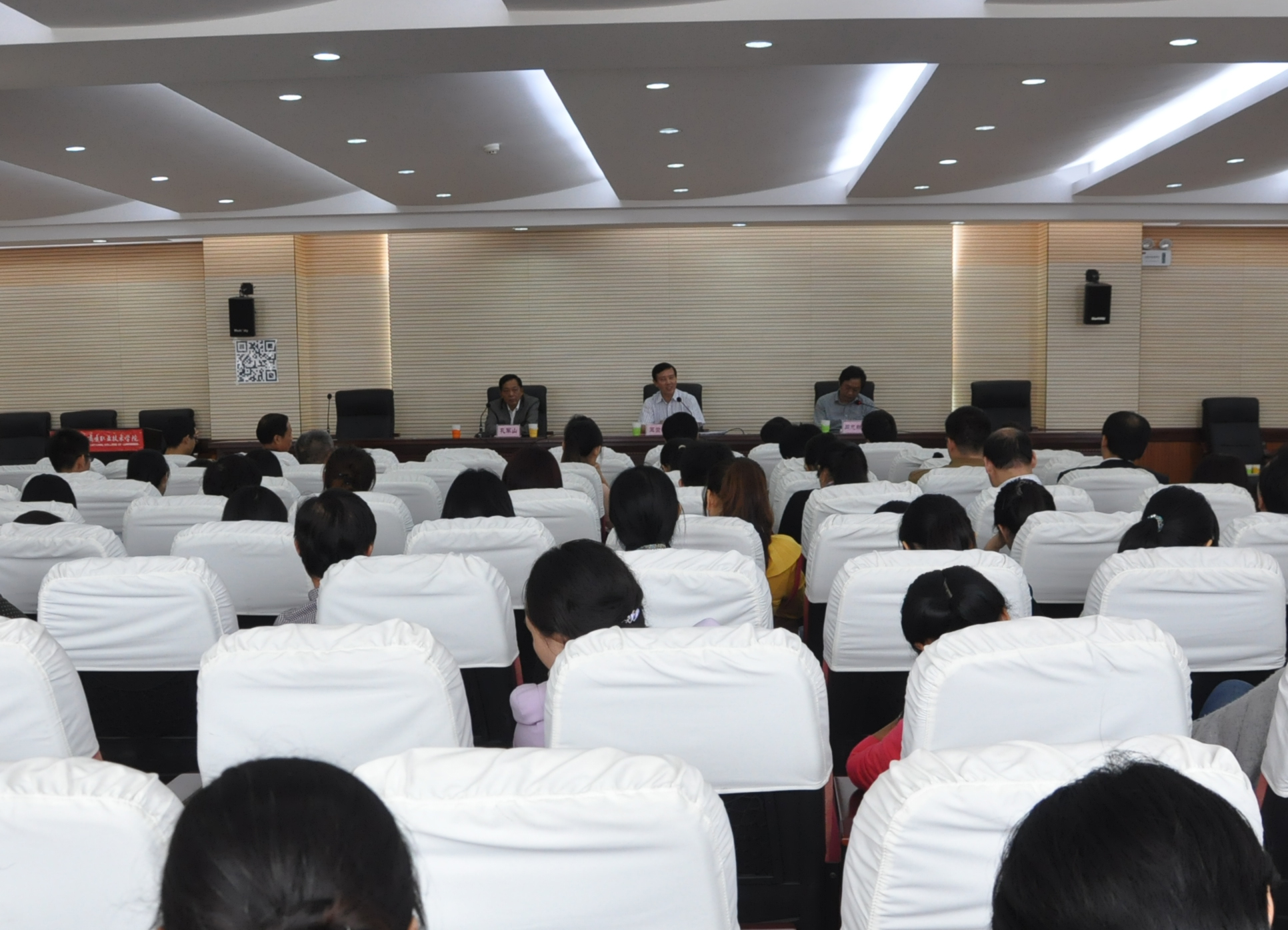 10月28日下午3时,学院党的群众路线教育实践活动民主评议会在办公楼六楼职工会议厅举行。省委派驻高校第十督导组组长王崇福、成员尹素云出席大会。学院党委班子成员、中层干部、在职教职工党员、民主党派代表、离退休党员代表以及学生代表参加了大会。学院党委副书记、院长孔军山主持会议。