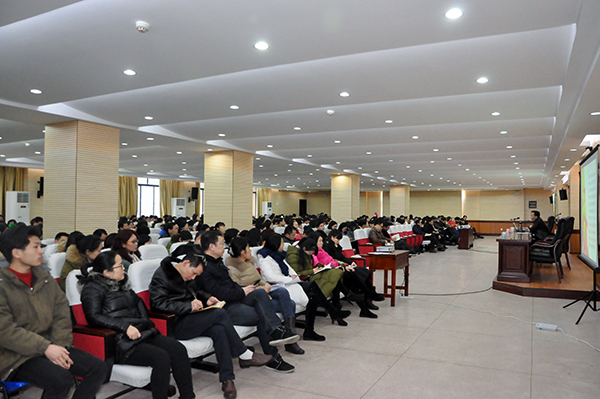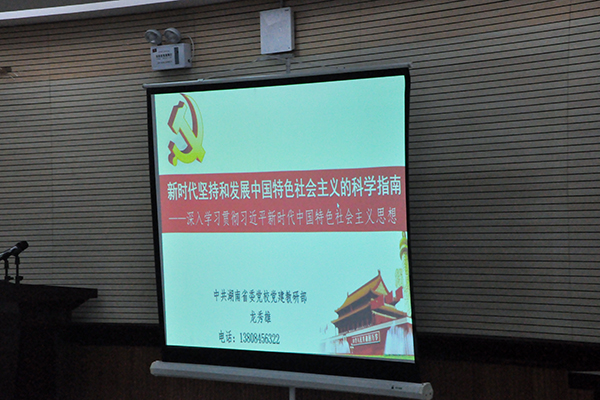 会上,龙教授为全体教职工作了题为《新时代坚持和发展中国特色社会主义的科学指南——深入学习贯彻习近平新时代中国特色社会主义思想》的辅导报告。他结合自身的学习思考体会,为大家解读了十九大主题和重大会议成果,并指出,党的“十九大”成果很丰富,主要体现在三个大的方面,一是重大的理论创新成果;二是重新修订通过了新党章;三是选举产生了新的中央领导集体。会议确立了习近平新时代中国特色社会主义思想作为党的指导思想地位。他还与大家分享了习近平的家教和经历、理论素养、执政风格、治国理政智慧,分析了其智慧之源。