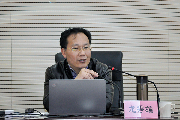 会上,龙秀雄从习近平新时代中国特色社会主义思想形成的时代背景、丰富内涵、时代意义三个方面解读了十九大的报告。他认为,新的历史性成就为理论创新奠定了坚实基础、十八大以来治国理政重要论述为习近平新时代中国特色社会主义思想形成奠定了理论基础、我国社会主要矛盾的转化为习近平新时代中国特色社会主义思想形成提供了新的时代条件、新时代中国共产党新的历史使命呼唤马克思主义理论创新、新时代中国特色社会主义战胜新挑战需要新的科学理论的指导等这些是习近平新时代中国特色社会主义思想形成的时代背景,习近平新时代中国特色社会主义思想的理论内涵和实践要求是习近平新时代中国特色社会主义思想的丰富内涵。习近平新时代中国特色社会主义思想开辟了中国特色社会主义的最新境界,指引着新时代中国特色社会主义的前进道路,彰显出新时代科学社会主义理论的蓬勃生机,为全球治理体系改革和建设贡献出了中国智慧和力量。
