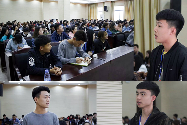 周书记强调,“立志”为天下第一等事,也是人生第一等事。他向在座各位提出两个问题:你有没有终生为之奋斗的目标?面对各种资讯、各种观点和价值观的碰撞,有没有独立思考和判断的能力?同学们踊跃发言,气氛热烈。其中,经贸团学分会副主席董岳的回答使人印象深刻,赢得掌声不断,他说:“在当今这个东西方文化激烈碰撞的时代,我们一定要坚持文化自信,正确认识我国文化,传承和发扬中国传统文化,勇做新时代的弄潮儿。”
