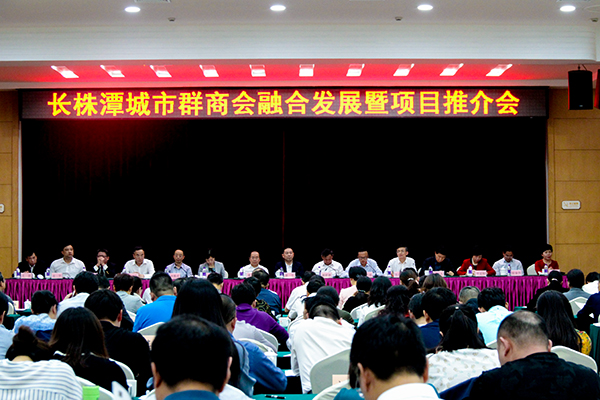 4月20日下午,长株潭城市群商会融合发展暨项目推介会在长沙举行