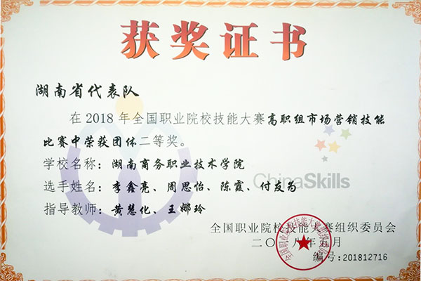 我院代表队荣获2018年全国职业院校技能大赛高职组市场营销赛项二等奖