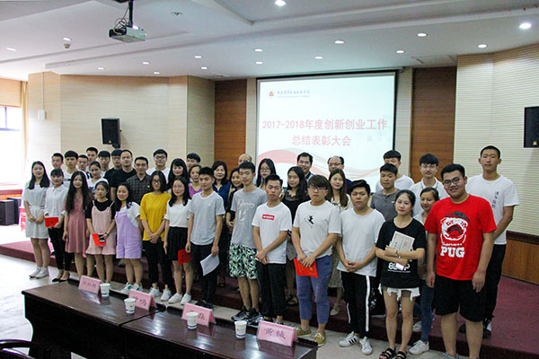 为了进一步激发同学们双创热情,促进学院双创工作。 5月29日下午3:00我院于办公楼学术报告厅举行创新创业年度(2017.5-2018.5)总结表彰大会。出席此次大会的有党委委员禹明华、创新创业学院院长陶炎焱、院团委书记杨明及各二级学院领导,会议由招生就业处副处长张庆主持。