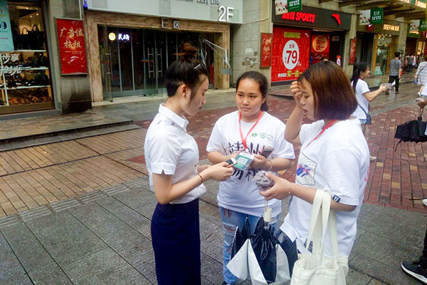 早晨6点半,迎着淅沥沥的小雨,志愿者在北校门集合完毕,一同前往黄兴广场参加“‘顺丰速运’2018湖南•靖州•杨梅节暨产业扶贫营销活动”,整个上午,我院志愿者在地铁出口、南门口等人流集中的场所围绕免费试吃、讲解扶贫活动、引导人群到活动现场等方面开展志愿服务工作。