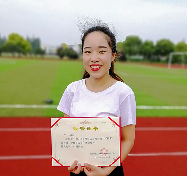学院应届毕业生曾维玉莹被上海街道授予“十佳好青年”称号