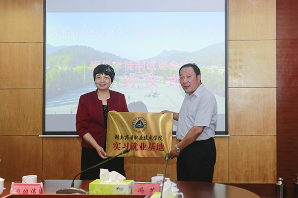 随后,在与会人员的见证下,双方签署了《现代学徒制试点(旅游管理专业)合作框架协议》,并授牌,湖南韶山管理局正式成为“湖南商务职业技术学院实习就业基地”,为双方进一步开展多层次、多形式、多领域的合作奠定了坚实基础。(供稿 邓玉梅)