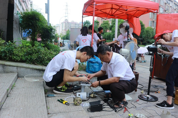 义务维修活动受到了社区居民的热烈欢迎,送修者络绎不绝。志愿者们共收取需维修电器130余件,其中修好复原100余件,主要是电吹风、电风扇、排插、电热水壶等家用小电器。志愿者们分工合作,组织有序开展,先由专人登记送修电器名称、故障、送修人及联系方式,再由专业维修人员进行检测维修,最后登记维修情况并反馈给居民。天气炎热,志愿者们的爱心更热。志愿者们不畏酷暑,头顶骄阳,汗流浃背的坚持维修,赢得了社区居民的一致好评。看到居民们满意的面容,队员们的内心满是成就感。活动期间,志愿者们始终热情高涨,心中满是老人的期盼和孩子渴望的眼神,骄阳酷暑坚守义务维修。