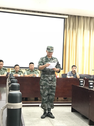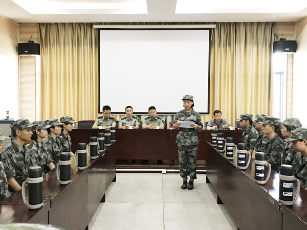(季东升、唐柳荷撰稿) 7月16日上午8:30,我院在办公楼第五会议室召开了2018级新生军训学生教官暑期集训动员大会。出席动员大会的人员有全体参训学生教官,帮训单位王政华副主任、金辉副主任、吴波教官,学工部和武装部有关领导和指导教师。
