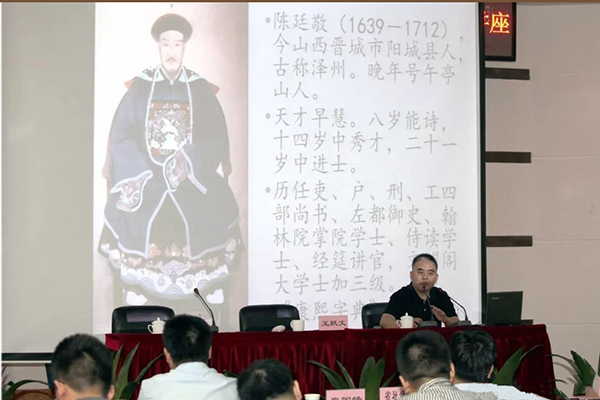 王跃文,著名作家,湖南省溆浦县人。湖南省作家协会主席,湖南省政协文教卫体和文史委员会副主任,中国作家协会主席团委员。湖南省德艺双馨艺术家,全国文化名家暨“四个一批”人才。在文坛和读者中享有盛誉。王跃文讲座的主题是:陈廷敬的人生抉择——兼谈《大清相国》的历史真相。