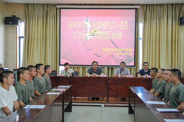 9月8日下午,我院在办公楼第五会议室隆重举行2018年应征入伍大学生欢送会。学院党委书记周忠新、副院长廖良林、相关部门负责人、武装部征兵专干、新兵代表、退役复学学生代表、在校生代表参加了欢送会。会议由廖良林副院长主持。