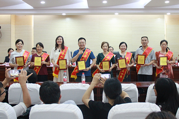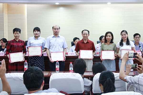 本网讯(记者 王振亚 胡颖) 9月10日下午,我校在办公楼6楼职工会议室举办2018年度教学科研工作暨第34个教师节表彰大会,隆重表彰26名从教30周年以上功勋教师,23名“三育人”楷模和10名科研工作先进个人。省供销社党组成员、监事会主任廖国锋,学校党委书记周忠新、校长李定珍、纪委书记林国安,副校长张朴、杨文涛、廖良林出席会议。