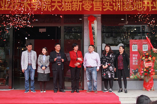 李定珍为揭牌仪式致词。她指出,建设天猫新零售实训基地是企业更好推进新零售发展、培养人才梯队,学校更好适应时代、服务学生的双赢之举。她希望,合作双方要不忘初心,促进新零售实训基地良性发展。她强调,天猫新零售实训基地揭牌是我校进行现代学徒制试点的重要内容。目前,实训基地主要通过开设天猫新零售学徒制班和向全校开放短期实训班两种方式进行学徒制人才培养。