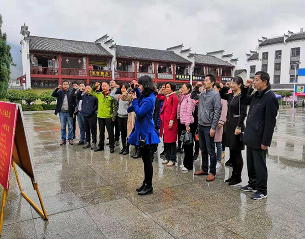 在沙田镇“第一军规广场”,面对鲜红的党旗,全体党员干部重温了入党誓词。《三大纪律 六项注意》是毛主席在桂东县沙田镇万寿宫里经过三天三夜的深思熟虑系统成篇而出。无规矩不成方圆,从“官兵吃老乡红薯”到“不拿百姓的一针一线”,“第一军规”的颁布奠定了红军统一纪律的基础,将人民军队武装成作风优良纪律严明之师。在现场教学环节中,讲解员特别强调军规与现在‘讲规矩’、‘守规矩’一样都是在强调规矩的作用,它对弘扬社会主义核心价值观,践行党的群众路线都具有重要意义。而且军规的内容与群众生活是密切相关的,直接体现了党群关系、军民关系。此外,她还告诉大家:“当前许多人信仰缺失,原因之一就是他们规矩意识淡薄了,忽视了社会运行的基本规则,而且,这部分人通常还缺乏对史实的了解,对问题认识无所依据,因而行为偏差非常严重。这是迫切需要关注和解决的问题”。