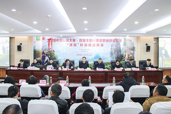 12月7日19时,大赛组委会主任、省供销合作总社理事会副主任杨利凯,省供销合作总社人事处处长王勇,省人力资源和社会保障厅职业技能鉴定中心主任廖云飞,省茶业协会会长、省茶业集团股份有限公司董事长、省职业技能鉴定专家委员会茶叶委员会副主任委员周重旺,省农业科学院茶叶研究所所长、省职业技能鉴定专家委员会茶叶委员会副主任委员张曙光,我校党委书记周忠新、党委委员禹明华等领导出席大赛开幕式。