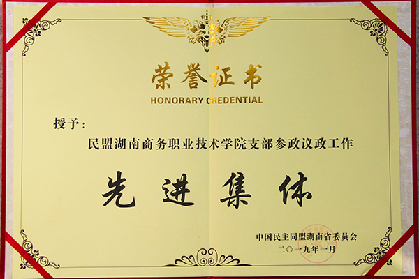 本网讯(王振亚) 日前,从中国民主同盟湖南省委员会传来喜讯,民盟商务职院支部荣获“参政议政工作先进集体”荣誉称号,我校校长李定珍获评“2018年度反应社情民意信息工作先进个人”。