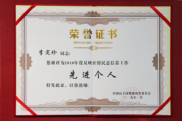 民盟湖南省委常委、我校校长李定珍获评“2018年度反映社情民意信息工作先进个人”。